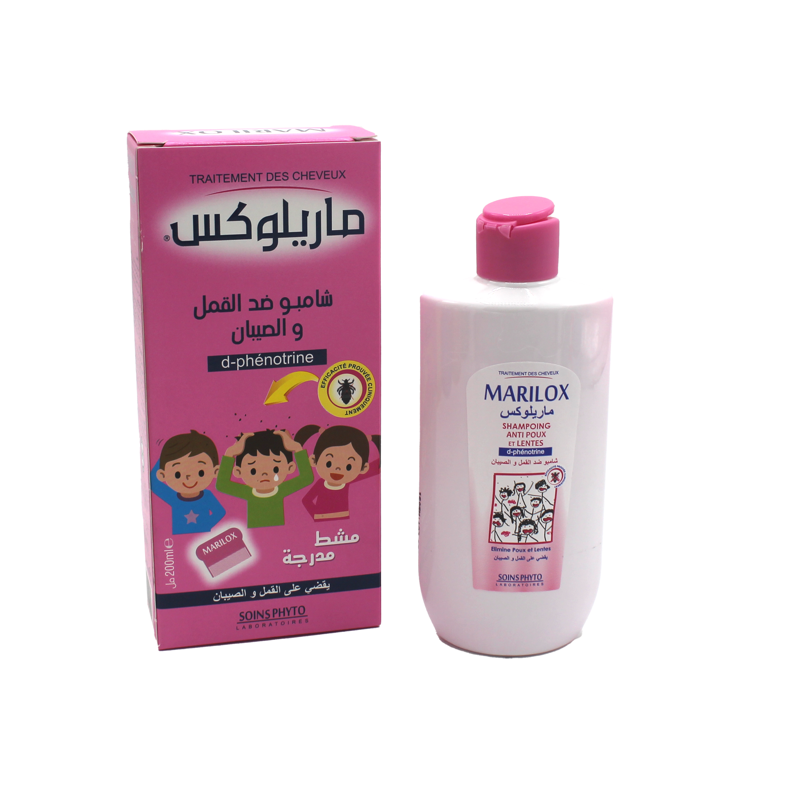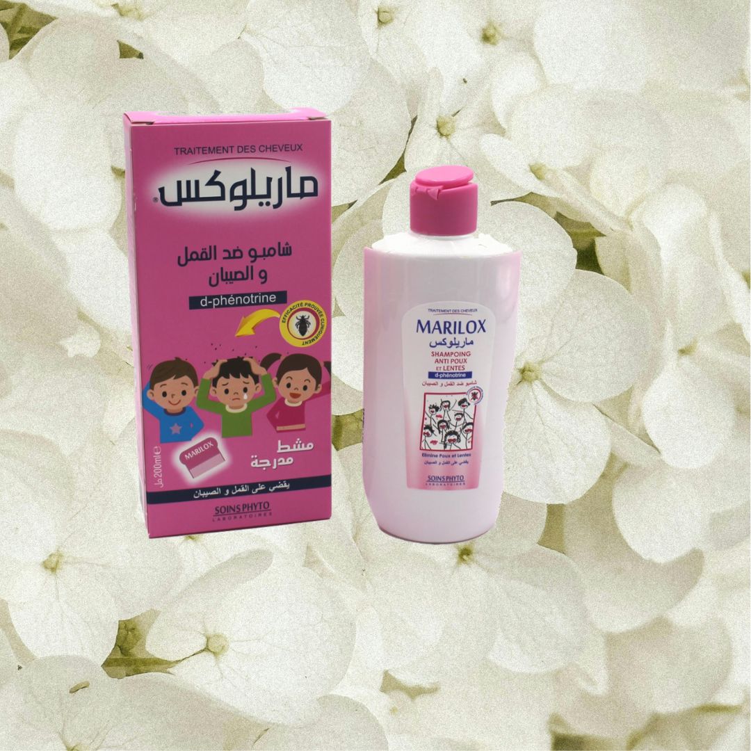Mouiller les cheveux par la lotion MARILOX pendant 02 heures puis appliquer le shampooing MARILOX et frictionner généreusement le cuir chevelu pour obtenir une mousse abondante. Laisser agir 5 à 10 minutes, rincer soigneusement. A l’aide du peigne démêler la chevelure pour faire glisser les poux et lentes mortes. Renouveler l’opération 24 h plus tard pour s’assurer que toutes les lentes sont détruites.